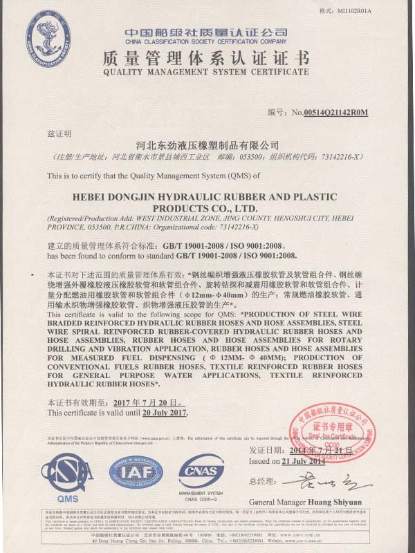 • 鋼絲編織管采用國際標(biāo)準(zhǔn)認(rèn)可認(rèn)可證書